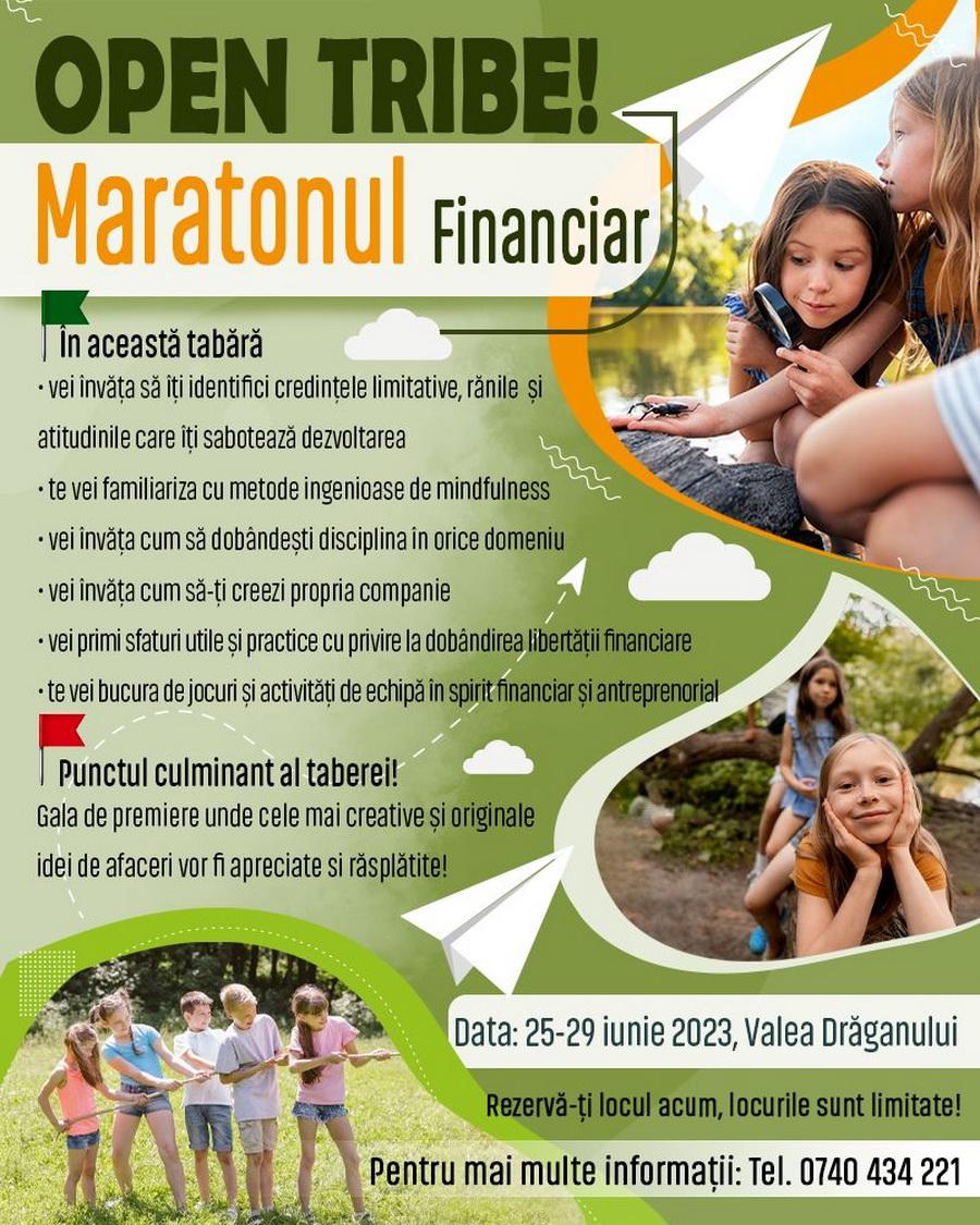 Luna iunie este sinonimă cu tabăra sau Maratonul Financiar propus de specialiștii Open Tribe, formați din psihologi, cercetători și traineri în domeniul dezvoltării personale și al antreprenoriatului. În fiecare an, aceștia propun o temă în acord cu tendințele și nevoile actuale de dezvoltare ale copiilor și adolescenților. Studiile și experiența anilor de activitate cu copiii, a organizării de tabere în fiecare an, precum și pasiunea și implicarea dovedite de aceștia sunt garanția unei experiențe de succes.