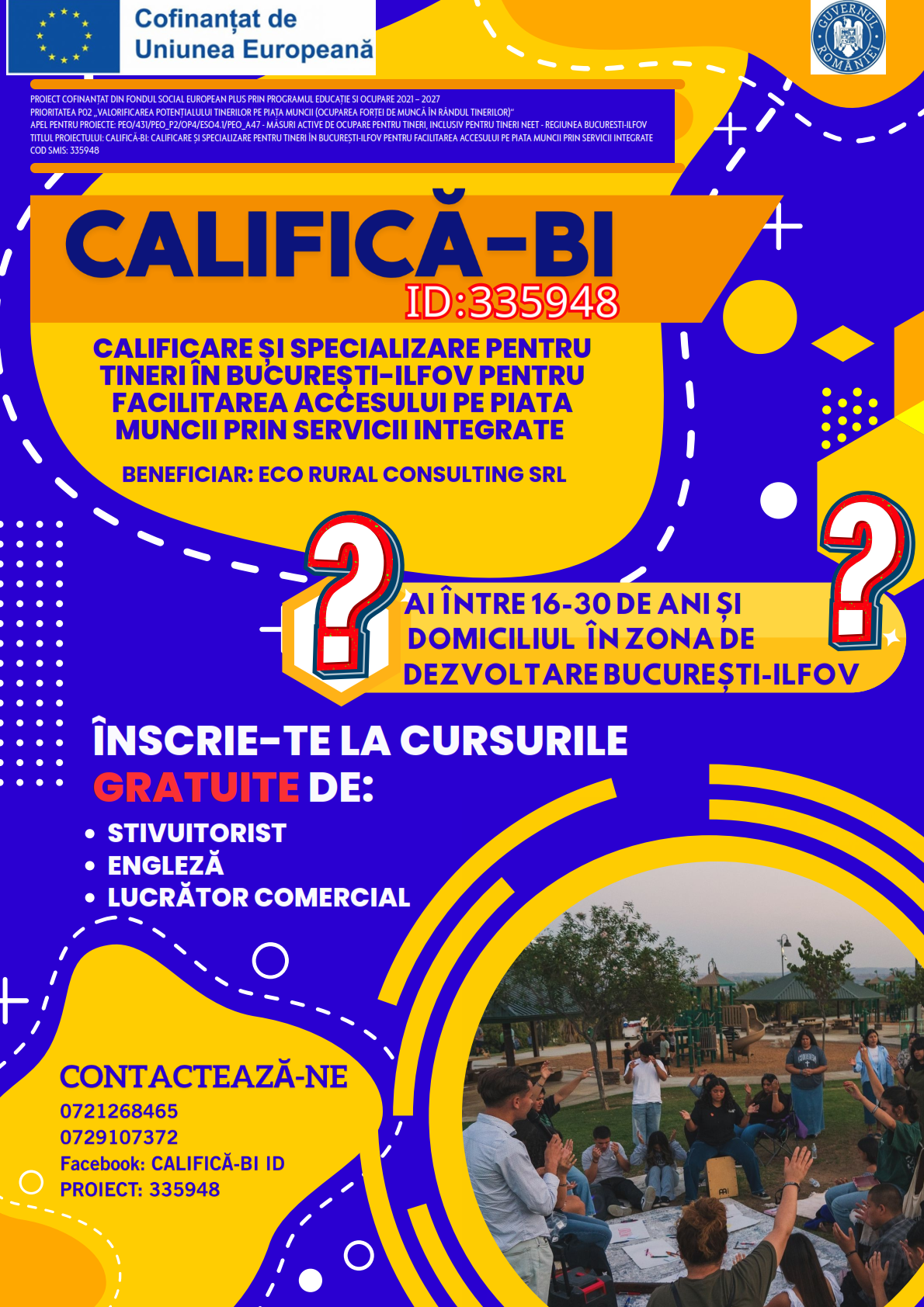 CALIFICĂ-BI: Calificare și Specializare pentru Tineri în București-Ilfov pentru facilitarea accesului pe piata muncii prin servicii integrate, Cod SMIS: 335948