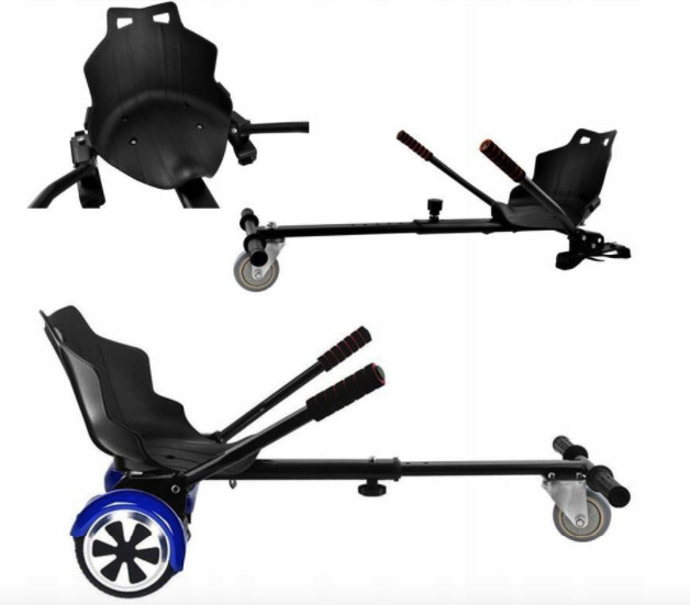 Cu siguranță multe persoane au încercat deja un hoverboard și au simțit senzațiile pe care le aduce. Acum, de el se poate ataşa un hoverkart! Da, acest lucru este posibil datorită kitului care se fixează pe hoverboard. Kitul are un scaun atașat de bară la capătul căreia se află o roată mică. Drept urmare, hoverboard-ul, în sine echipat cu 2 roți, se transformă într-un kart cu 3 roți și un scaun.