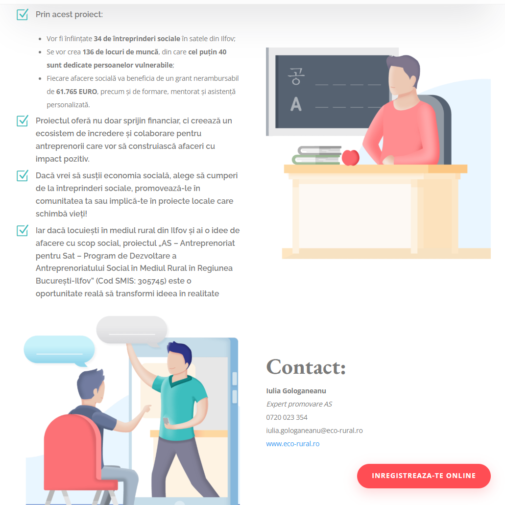 Iar dacă locuiești în mediul rural din Ilfov și ai o idee de afacere cu scop social, proiectul „AS – Antreprenoriat pentru Sat – Program de Dezvoltare a Antreprenoriatului Social în Mediul Rural în Regiunea București-Ilfov” (Cod SMIS: 305745) este o oportunitate reală să transformi ideea în realitate.