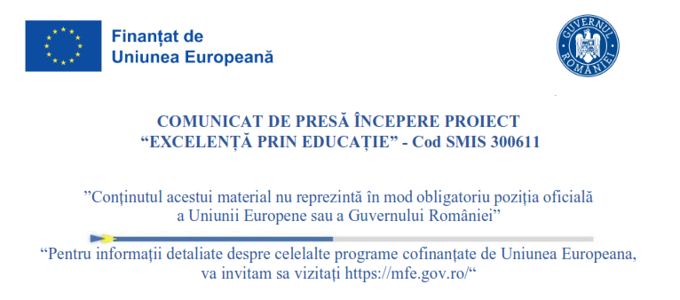 COMUNICAT DE PRESĂ ÎNCEPERE PROIECT “EXCELENȚĂ PRIN EDUCAȚIE” - Cod SMIS 300611