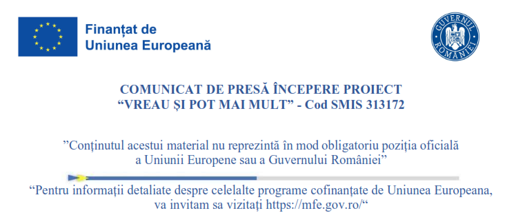 COMUNICAT DE PRESĂ ÎNCEPERE PROIECT “VREAU ȘI POT MAI MULT” - Cod SMIS 31317