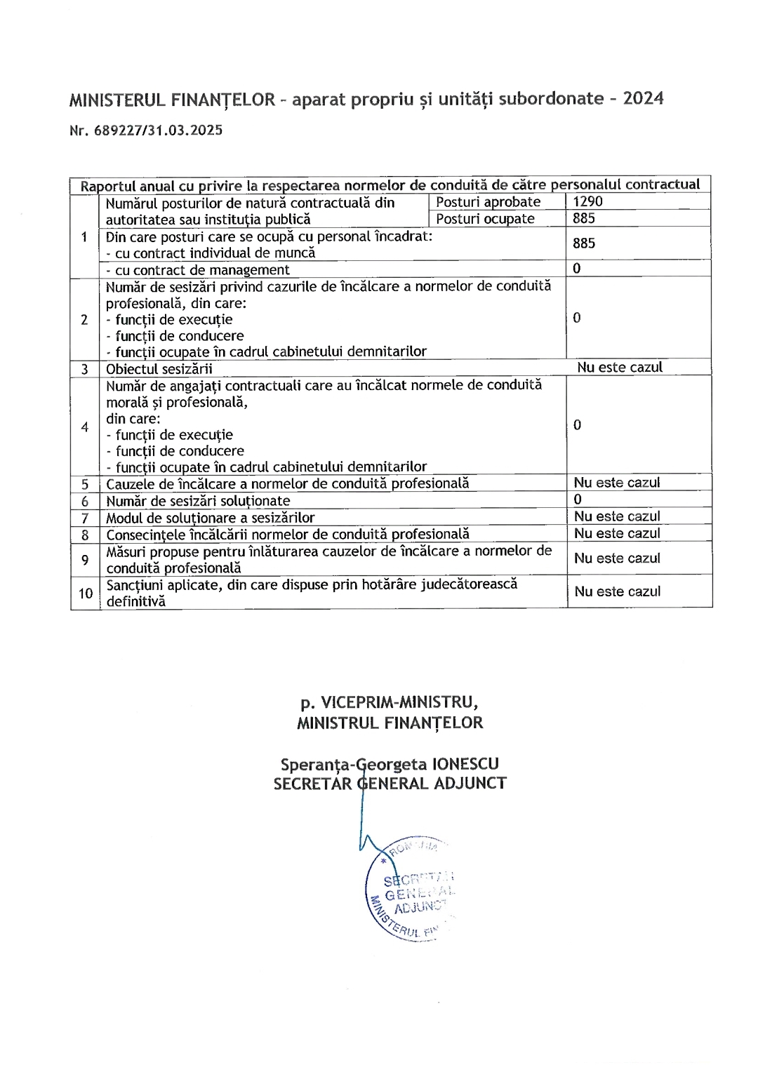 Comunicat Ministerul Finantelor #Finante / Contabilitate #Bucuresti Raport anual cu privire la respectarea normelor de conduită de către personalul contractual Comunicat publicat de: test (click pentru a vizualiza profilul)