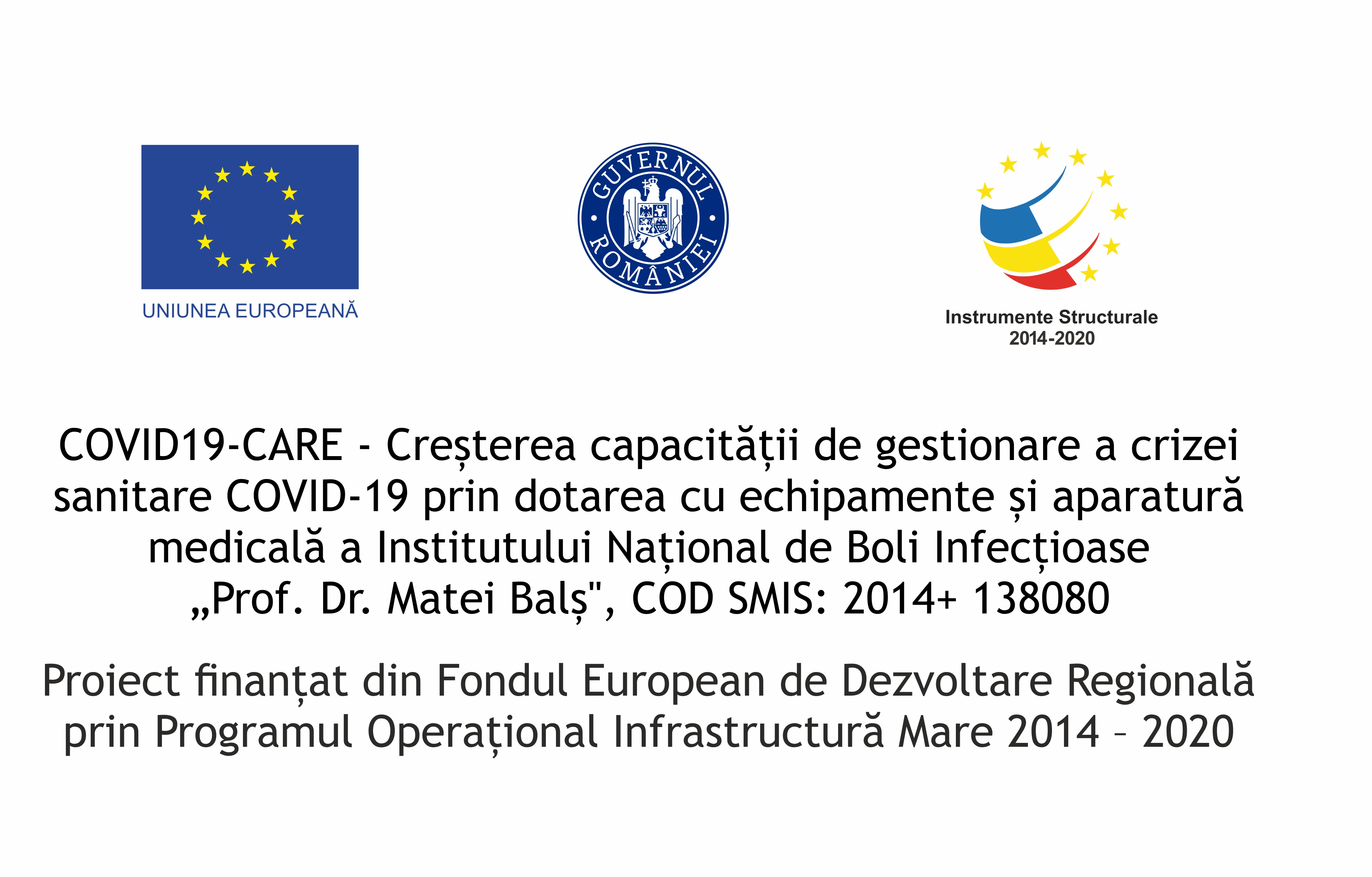 În data de 27.02.2023 a avut loc Conferința de închidere a proiectului “COVID19-CARE – Creșterea capacității de gestionare a crizei sanitare COVID-19 prin dotarea cu echipamente și aparatură medicală a Institutului Național de Boli Infecțioase „Prof. Dr. Matei Balș”, COD SMIS: 2014+ 138080, proiect finanțat din Fondul European de Dezvoltare Regională prin Programul Operațional Infrastructură Mare 2014-2020. Evenimentul a avut loc la sediul Institutului Național de Boli Infecțioase „Prof. Dr. Matei Balș”, situat în Strada Doctor Calistrat Grozovici 1, București 021105. În cadrul conferinței au susținut alocuțiuni managerul de proiect Daniela Cătălina Dobrescu și Profesor Doctor Adrian Streinu Cercel. A fost prezentat contextul implementării acestui proiect, obiectivele atinse, precum și date tehnice cu privire la echipamentele achiziționate prin proiect.