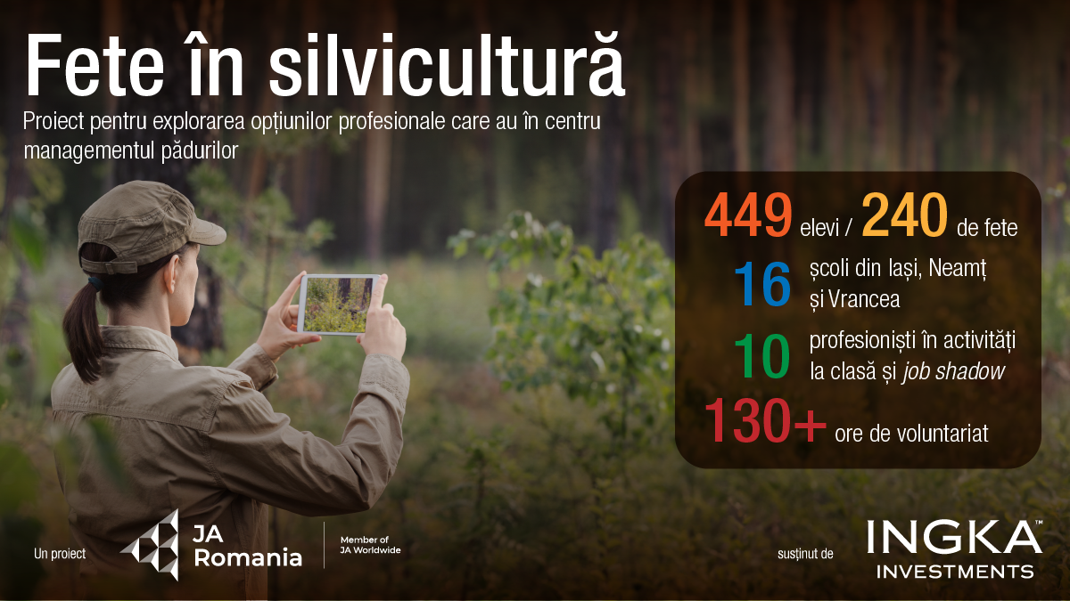 Junior Achievement (JA) România și Ingka Investments România au derulat în acest an școlar proiectul „Fete în silvicultură” – o inițiativă pilot pentru orientarea tinerilor spre profesii din domeniul silvic și pentru încurajarea fetelor către un domeniu considerat ca fiind preferat de băieți.