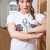 “Am primit cu mare bucurie în suflet invitaţia Cristinei Chiriac de la Flori de IE, de a realiza o şedinţă foto atipică, cu ii într-o sală de sport. Am purtat o ie românească, model inspirat după o ie veche de peste 80 de ani. Aş purta ie oricând, în orice moment al zilei şi la blugi şi la fustă, la orice, atât de mult iubesc ia românească! Sunt îndrăgostită de ii aşa cum sunt îndrăgostită de sport, de gimnastică şi atunci când port ie, simt cu adevărat că sunt româncă! Mi-am dat seama că noi, româncele avem un lucru cu o valoare inestimabilă, transmis cu mândrie din generaţie în generaţie, şi acesta este reprezentat de IA românescă! Şi pentru că de Paşte trebuie să purtăm obligatoriu ceva nou, eu mă voi înnoi cu o ie!”, a declarat Monica Roşu.