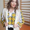 Elementul central al noii colecţii Flori de IE este ia românească cusută cu fir metalic. Toate modelele sunt cusute în întregime manual, cu fir de bumbac, mătase. “Modelul purtat de Monica la şedinţa foto se numeşte Floare de Camelie este o ie cusută în întregime manual, cu migală şi pasiune, cu fir de bumbac sau cu fir de mătase pentru preţiozitate de culoarea boabei de muştar, împletit armonios cu verdele cristalin, o combinaţie de culori ce te va scoate din anonimat. Flori de IE încearcă să conserve şi să transmită mai departe ceea ce specialiştii în tradiţia noastră populară numesc însemne magice cusute cu grijă, care au menirea de a proteja purtătorul de spiritele rele. Ia românescă reprezintă în acest moment cel mai bun ambasador al valorilor româneşti, crează punţi şi uneşte inimi, aduce speranţa în suflete. Am reuşit să creăm o armonie între elementele tradiţionale şi cele moderniste, reuşind să promovăm cu succes arta cusutului manual, în aşa fel încât ia să redevină o piesă vestimentară specială mereu la modă.”, a declarat Cristina Chiriac, fondator Flori de IE.