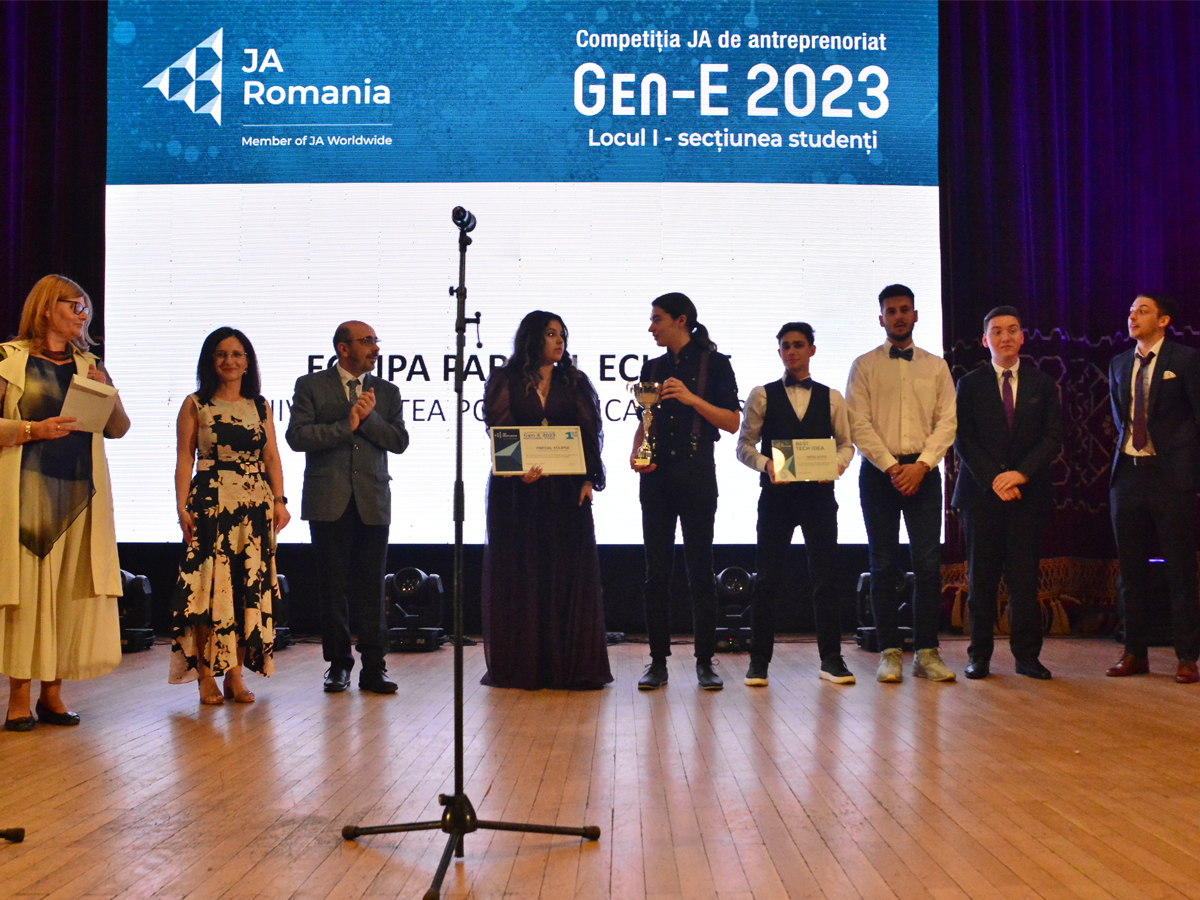 Anunțarea mini-companiilor și start-up-urilor câștigătoare în finala națională a competiției europene de antreprenoriat Gen-E, ediția 2023, a reprezentat un moment mult așteptat al Galei aniversare JA.