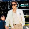 La antrenament, George Russell a purtat o jachetă varsity reversibilă, un tricou polo slim, pantaloni straight fit și mocasini din piele lăcuită din colecția TOMMY HILFIGER Primăvara 2024.