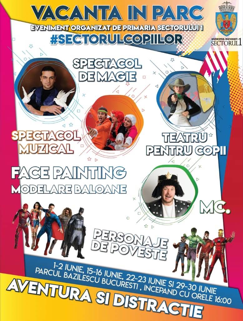 Personaje de poveste preferate de copii și activități câte și mai câte le dau întâlnire celor mici și pe platforma din fața Teatrului de Vară din Parcul Bazilescu, în week-end-urile: 1-2 iunie, 15-16 iunie, 22-23 iunie și 29-30 iunie. Aventura și distracția încep la ora 16:00 și țin până la ora 19:30.