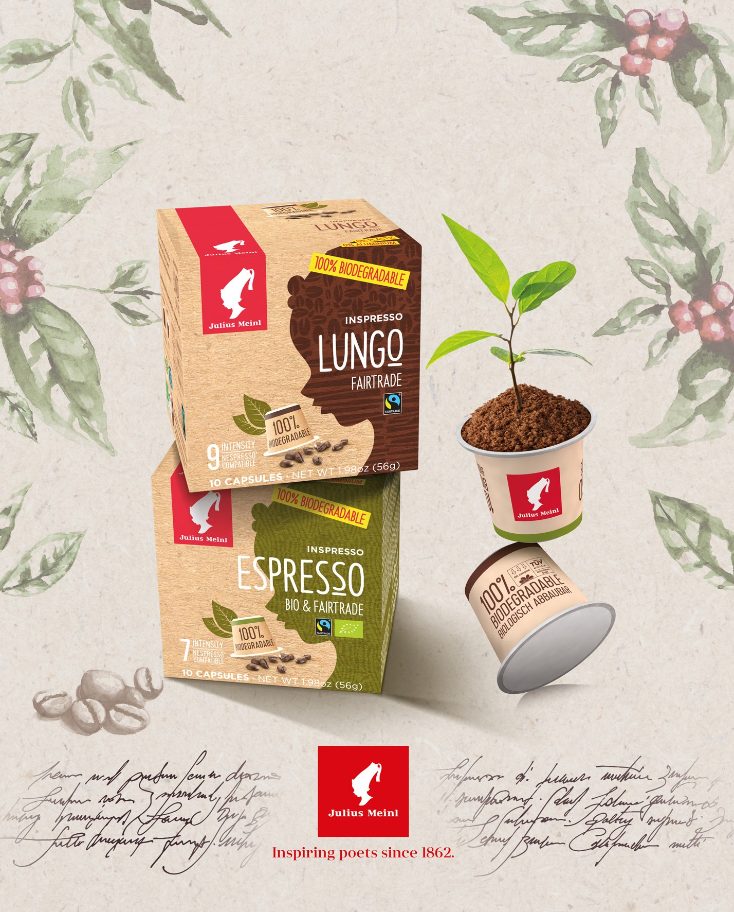 Julius Meinl își dovedește astfel angajamentul de a stimula sustenabilitatea în industria producătoare de cafea, oferind capsule de cafea 100% biodegradabile, 100% compostabile industrial, realizate din resurse regenerabile și certificate OK BIOBASED, asigurând în continuare cel mai înalt nivel de calitate a produsului. În plus, oferă cea mai bună protecție a aromei datorită unui sigiliu patentat, care protejează cafeaua de oxigen, asigurând în același timp cea mai bună aromă și cel mai bun gust.
