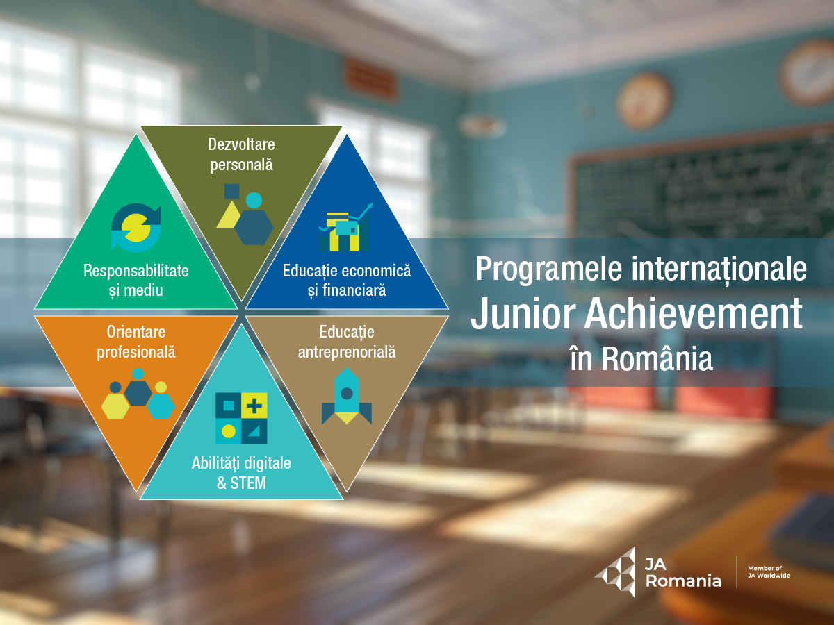 Junior Achievement (JA) România, organizație nonprofit, a fost fondată în anul 1993 și este parte a JA Worldwide® USA și JA Europe. Junior Achievement este cea mai mare organizație internațională de educație antreprenorială, economică, financiară, de orientare profesională și dezvoltare personală, programele sale fiind urmate în 40 de țări din Europa și peste 100 din lume. În 2024, organizația a urcat pentru a șasea oară în Top 10 ONG-uri din lume și a primit a treia nominalizare la Premiul Nobel pentru Pace. În România, programele JA de tip applied learning sunt urmate anual de peste 292.000 de elevi și studenți din 1.834 instituții de învățământ și se desfășoară local în parteneriat cu Ministerul Educației, instituțiile de învățământ și comunitatea de afaceri. Mai multe detalii sunt disponibile pe https://www.jaromania.org