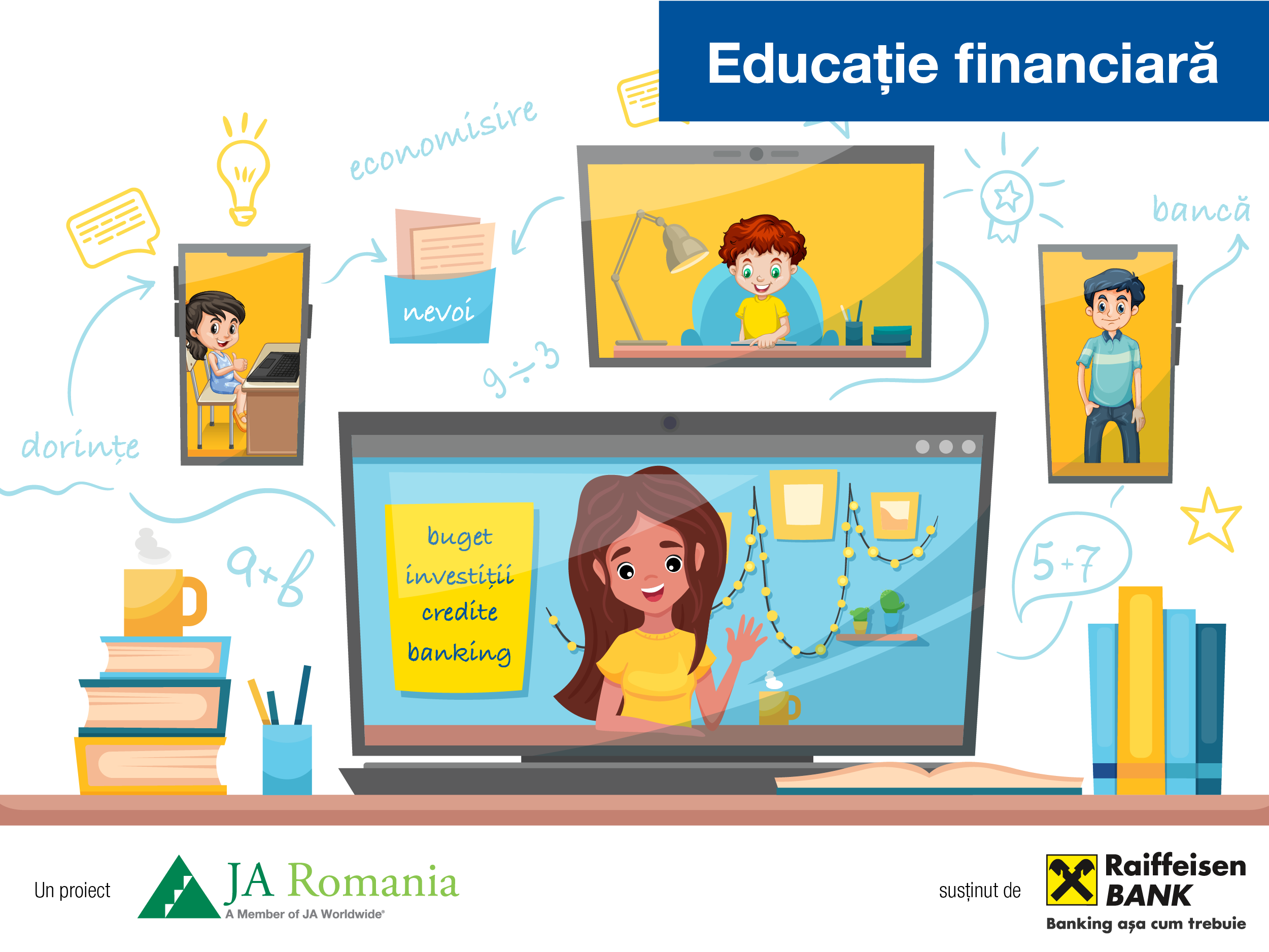 Digitalizarea activităților de educație financiară dezvoltate în cadrul parteneriatului a început în 2018 cu modulul ABCdar bancar, adresat elevilor de liceu, și este completată în acest an cu secvențe digital-interactive pentru elevii de clase primare și cu webinare live susținute de voluntarii Raiffeisen Bank.