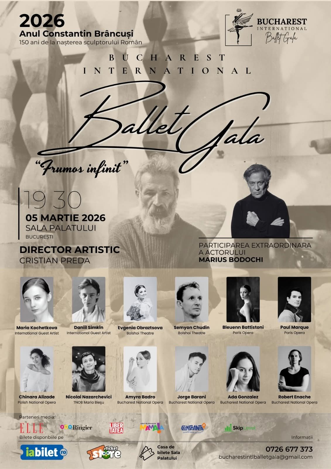 Bucharest International Ballet Gala propune un spectacol interdisciplinar, în care baletul și intervenția actoricească se întâlnesc într-o construcție scenică inspirată de temele esențiale ale creației brâncușiene: zborul, verticalitatea, esența și lumina. Reunirea unor artiști de asemenea calibru într-o singură seară, la București, plasează evenimentul printre cele mai importante manifestări culturale ale anului 2026 din România.