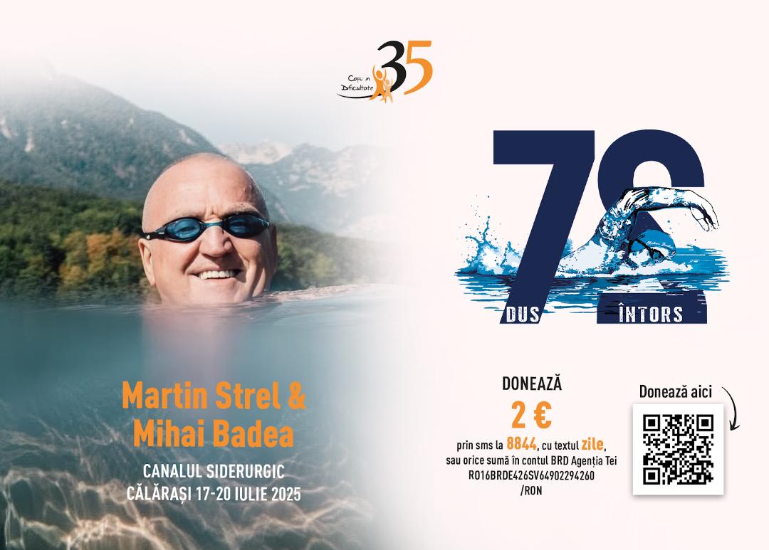Legendarul înotător sloven Martin Strel, cunoscut drept „Big River Man” și deținătorul unor recorduri mondiale de neegalat în înotul de anduranță, vine pentru prima dată în România, pentru a lua parte la un eveniment unic. Alături de înotătorul român Mihai Badea, Strel va participa la „72 Dus-Întors”, primul eveniment de înot de anduranță de 72 de ore continuu din țară, desfășurat între 17 și 20 iulie 2025, pe Canalul Siderurgic din Călărași.