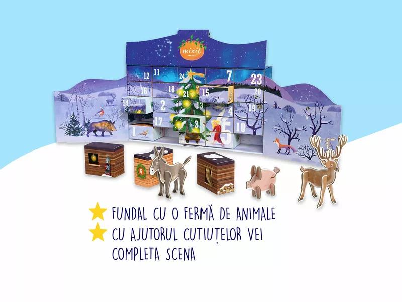 Ediția din acest an are tema „ferma de animale” și include piese din carton care se pot combina pentru a crea animăluțe reale sau inventate. Pachetul este completat de autocolante, planșe de colorat și jocuri, transformând așteptarea Crăciunului într-o experiență creativă, nu doar delicioasă.