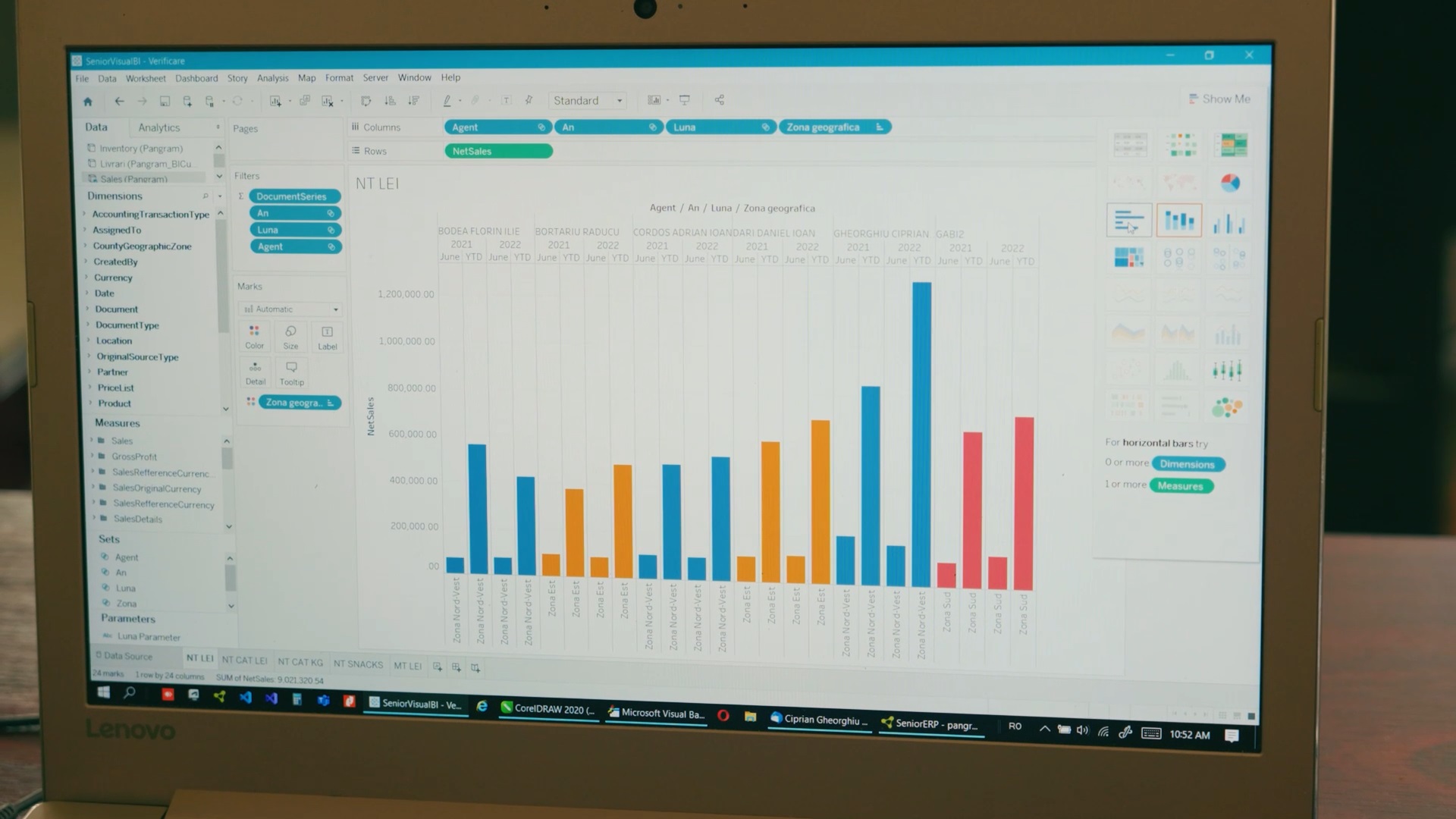 Solutia Business Intelligence o folosim pe doua directii, pe zona de vanzari si pe cea de financiar. Avem posibilitatea sa urmarim efectele promotiilor pe care le lansam, sa gestionam bugetul de promotii si sa vedem in ce masura se consuma acele bugete. Pe partea de financiar lucrurile s-au simplificat incredibil de mult. Datorita automatizarii, tot ce inseamna raportare lunara catre grup se intampla intr-un timp mult mai scurt, nu mai discutam de zile, ci de ore”, a spus Liviu Semenescu, Director General Pangram.