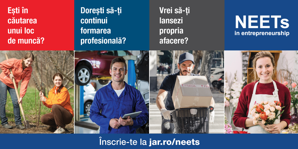 Pe toată durata lunii martie toți tinerii cu vârste între 18 și 29 de ani, fără un loc de muncă, sau care nu se află într-un program de educație sau formare profesională, se pot înregistra în program, pe platforma https://neets-entrepreneurship.org/ro/register