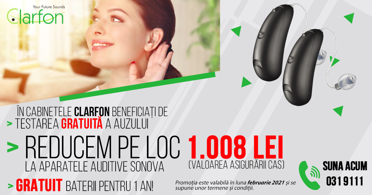 În situația în care este necesară purtarea unui aparat auditiv, Clarfon este locul în care ofertele cele mai avantajoase sunt prezente. Raportul calitate – preț este excelent. Știm că sănătatea auzului este extrem de importantă, de aceea, în luna februarie, am pregătit o ofertă pentru tine și cei dragi.