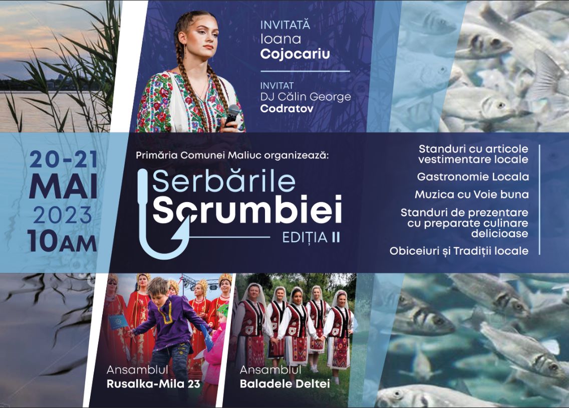Maliuc se pregătește să găzduiască a doua ediție a evenimentului cultural local ”SERBĂRILE SCRUMBIEI”, care va avea loc pe data de 20-21 MAI 2023, în Delta Dunării. Această manifestare culturală își propune să promoveze frumusețea și bogăția zonei prin intermediul tradițiilor și obiceiurilor locale.