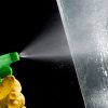 - Partea interesanta a acestui proces acum incepe. Intr-o sticluta amesteca apa cu otet si pulverizeaza pe geam.