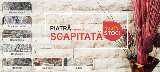 VINCA, cel mai mare importator, distribuitor si prelucrator de piatra naturala din zona de est a Romaniei, te invita sa consulti online, pe https://www.vinca.ro sau offline, in depozitele din Bacau si Neamt, noile modele de piatra scapitata din stoc.