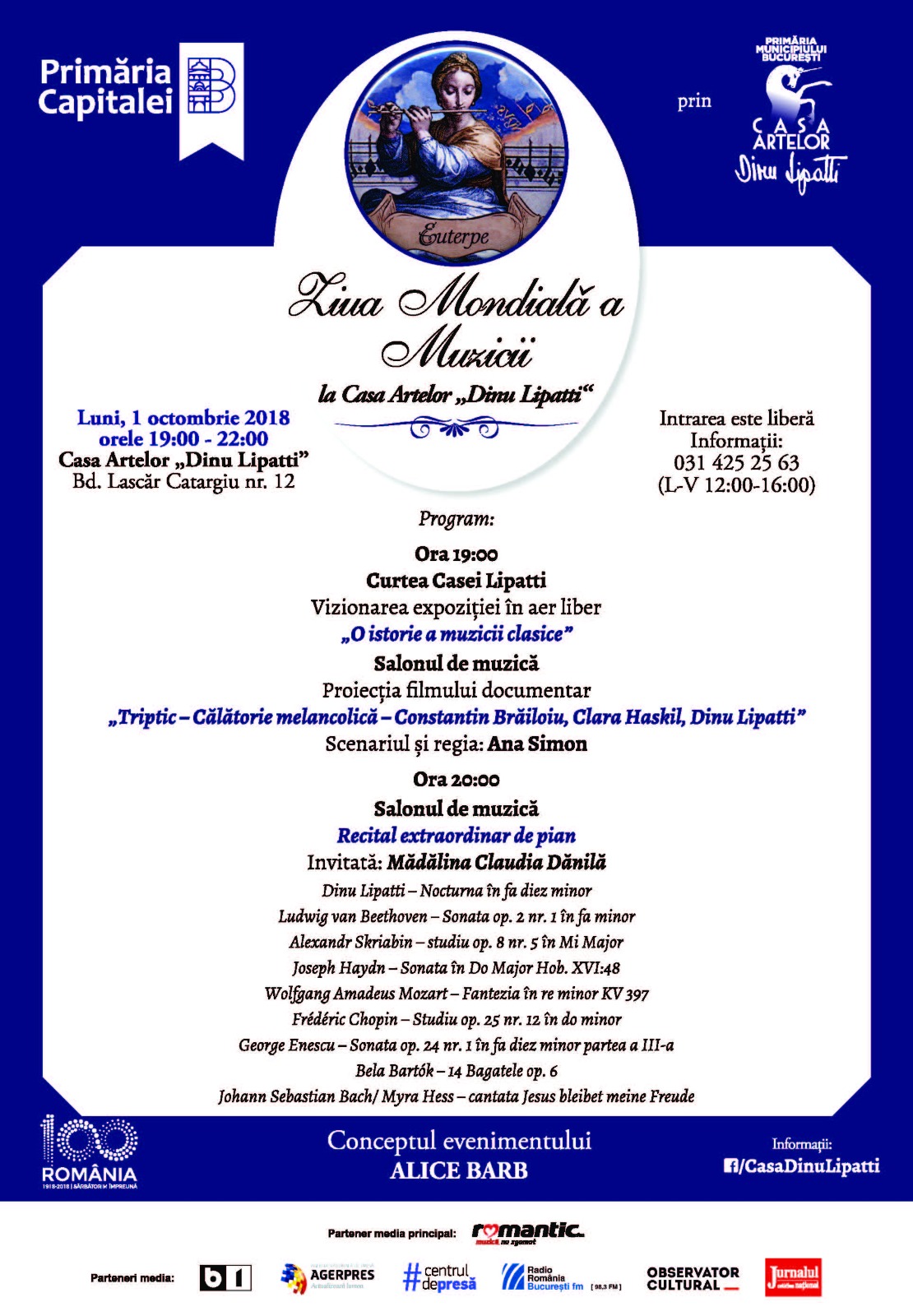 Conceptul evenimentului aparține regizoarei și pianistei Alice Barb, directorul fondator al Casei Artelor „Dinu Lipatti”.