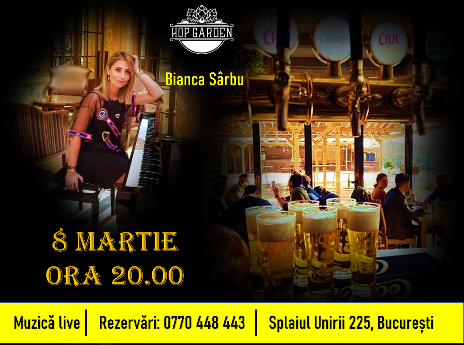 Hop Garden organizeaza un eveniment deosebit, pentru a sărbători doamnele si domnisoarele speciale din viata noastra alaturi de artista Bianca Sarbu!