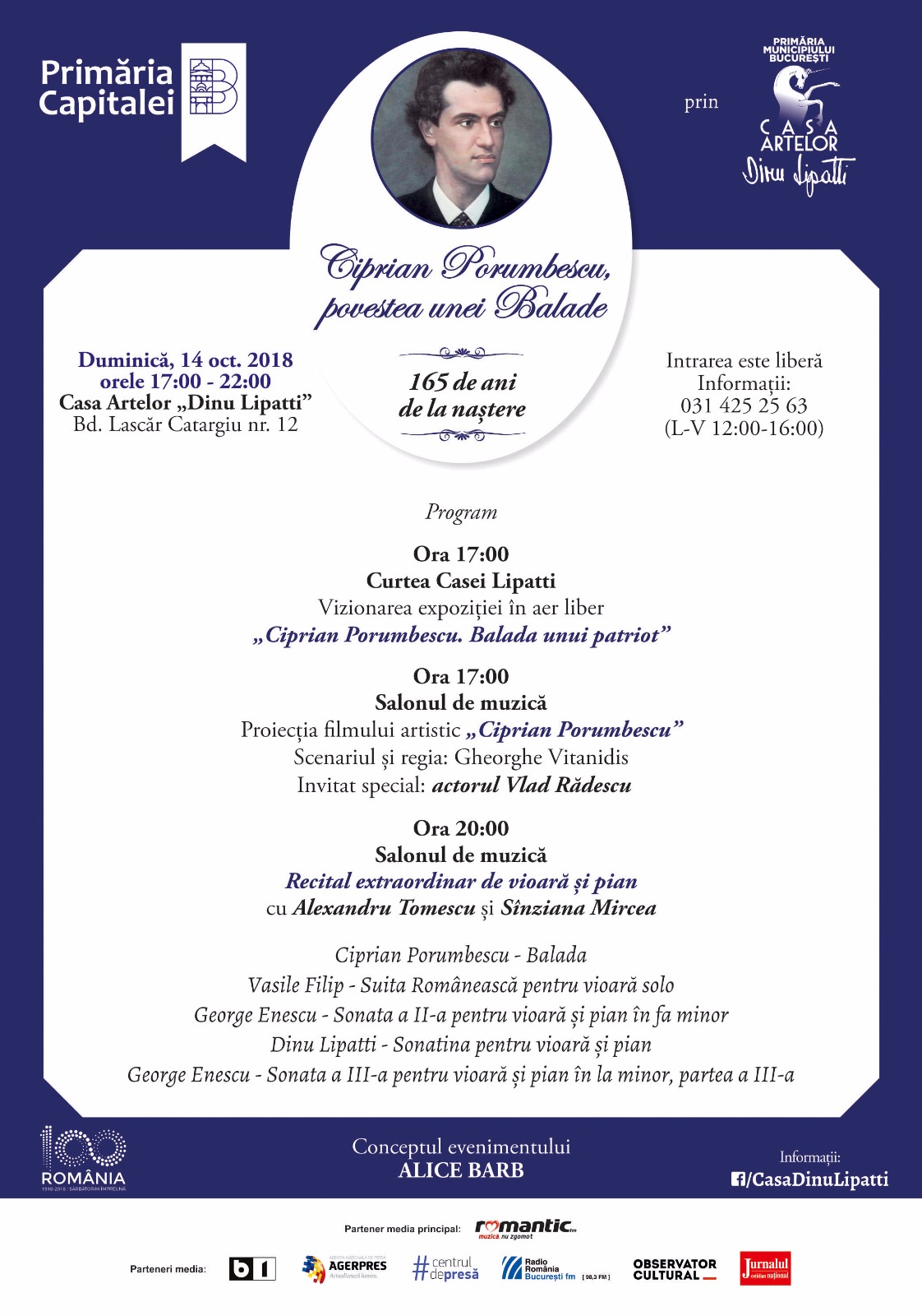 Evenimentul dedicat marelui compozitor va avea invitați pe măsură. Publicul este așteptat de la orele 17:00 pentru vizitarea Casei Lipatti, a expoziției „Ciprian Porumbescu. Balada unui patriot” și a expoziției despre viața și creația lui Dinu Lipatti.