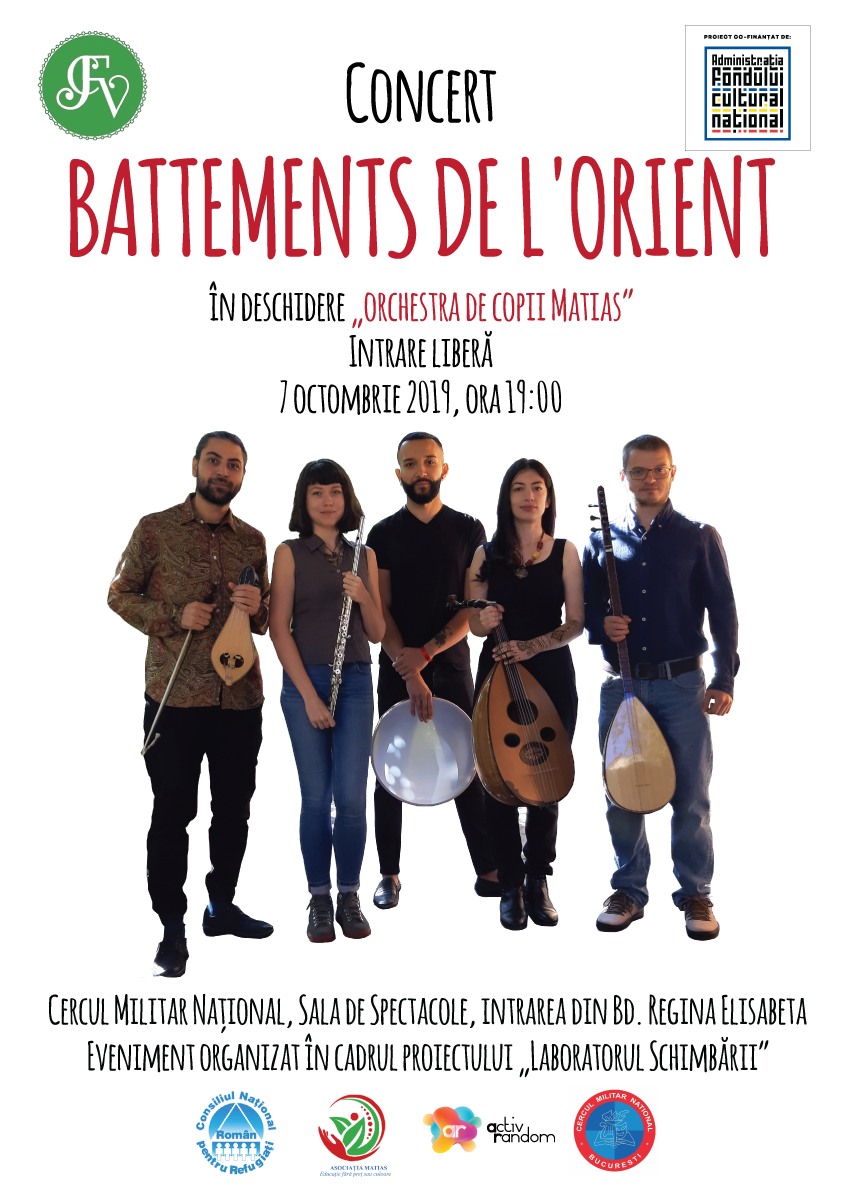 Intrarea este liberă și se face pe bază de înscriere la contact@victoriei.ro. Concertul este un dialog muzical între trupa Battements de l’orient și Orchestra Matias. Instrumentiştii recuperează şi reinterpretează trecutul muzical a numeroase ţări şi curente muzicale și oferă publicului ocazia să observe cum pot fuziona, în armonie, culturi diferite.