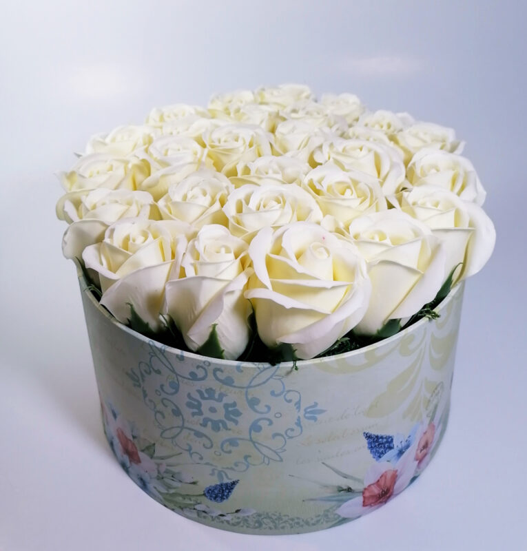 Săpunul, un material extrem de versatil în ceea ce privește modelarea, dă posibilitatea creării unor aranjamente florale realiste, parfumate, dar nu la fel de fragile ca florile adevărate, ci înzestrate cu viață fără de moarte.