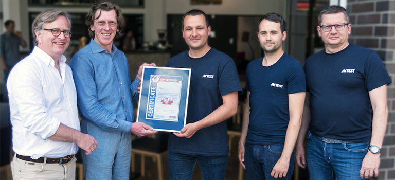 Premiu special pentru G DATA: Institutul independent de testare AV-TEST a acordat producatorului german de securitate informatica cel de-al 100-lea certificat de testare. Conducatorii institutului, Maik Morgenstern si Guido Habicht, precum si managerul laboratorului de teste, Erik Heyland, au inmanat personal premiul in G DATA Campus din Bochum membrilor consiliului de administratie si fondatorilor companiei Kai Figge si Andreas Luning.