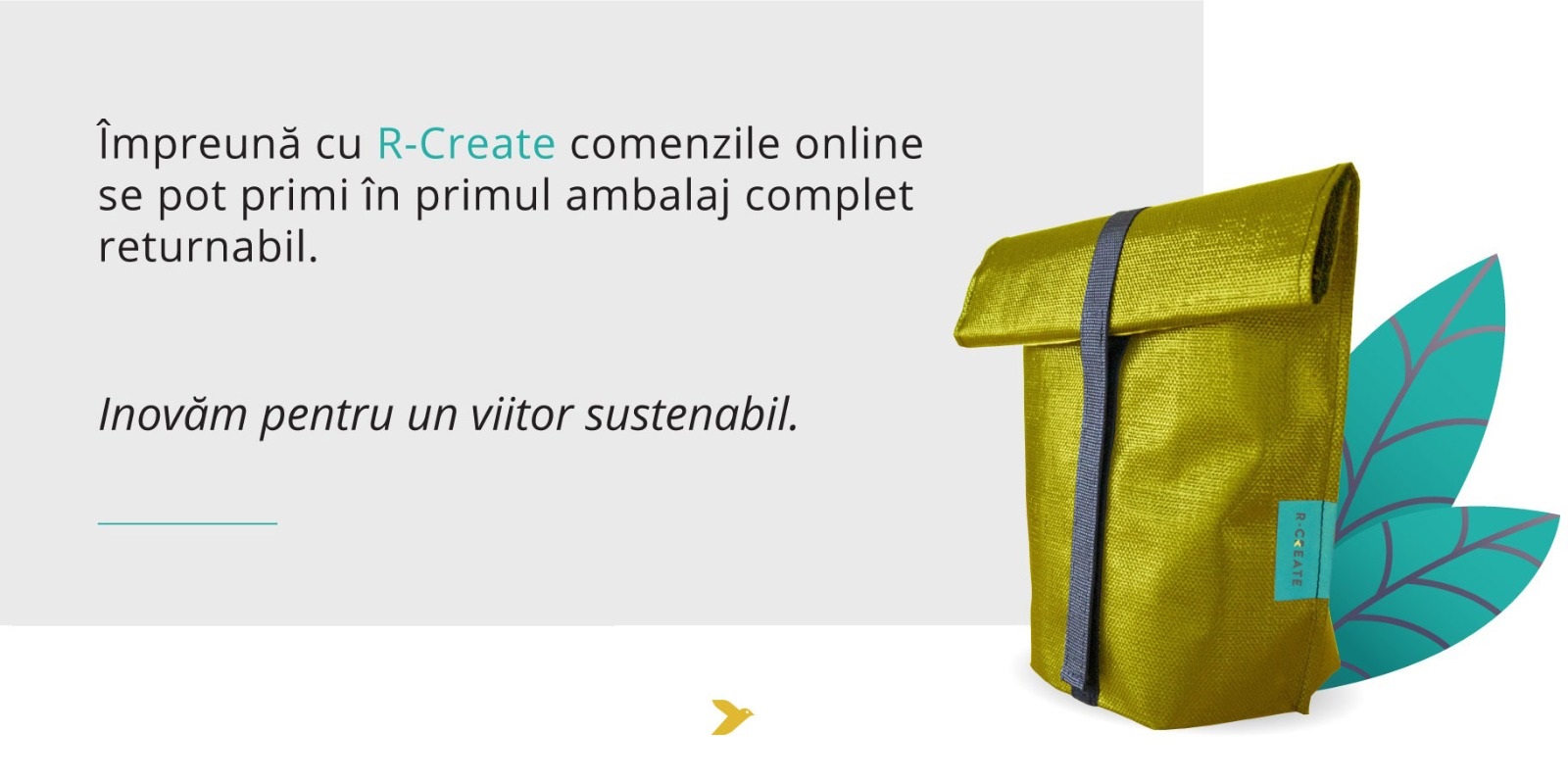 R-CREATE este solutia de impachetare eco friendly, creată special pentru comercianții online, prin care ambalajele de unică folosinţă aferente livrărilor sunt înlocuite cu un ambalaj returnabil şi refolosibil.