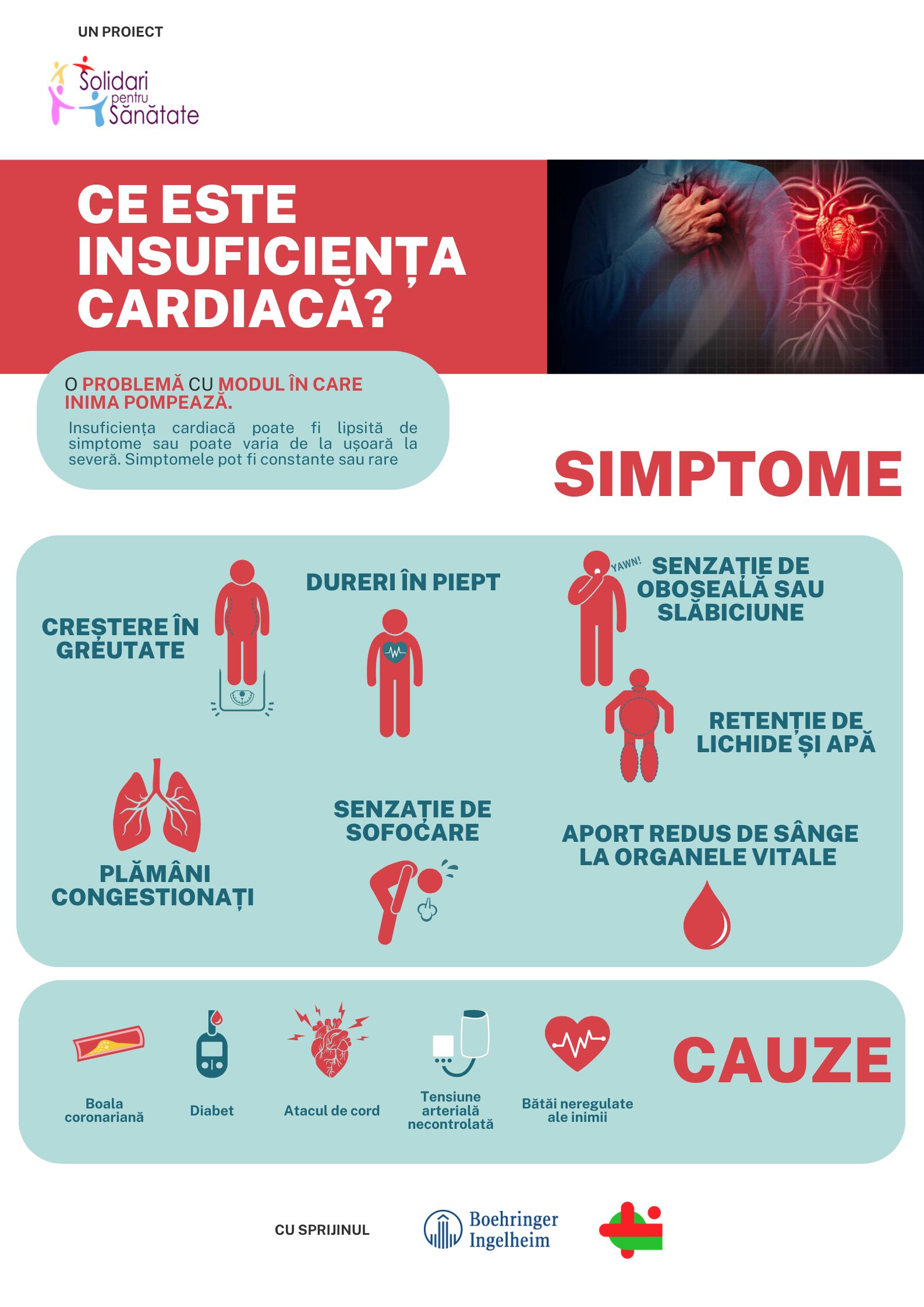 Asociația Solidari pentru Sănătate, fondată pentru a ajuta pacienții diagnosticați cu afecțiuni cronice, a lansat campania de informare și conștientizare „Am insuficiență cardiacă, plec in vacanță!” pentru a educa pacienții și publicul larg despre riscurile insuficienței cardiace și măsurile preventive necesare în sezonul cald. Campania, desfășurată în perioada iulie – septembrie 2024, va include activități online și resurse disponibile pe paginile de Facebook „Solidari pentru Sănătate” și „Pacientul 2.0”, estimând să atingă peste 20.000 de vizualizări online. Campania este sprijinită de Boehringer Ingelheim și clinica Theracardia Brașov.