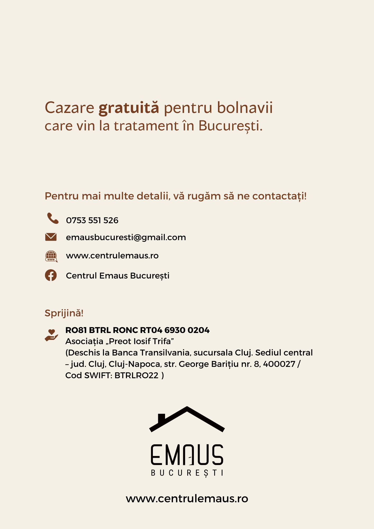 Pentru mai multe detalii despre cum se poate beneficia de servicile Centrului EMAUS, puteți accesa site-ul dedicat: