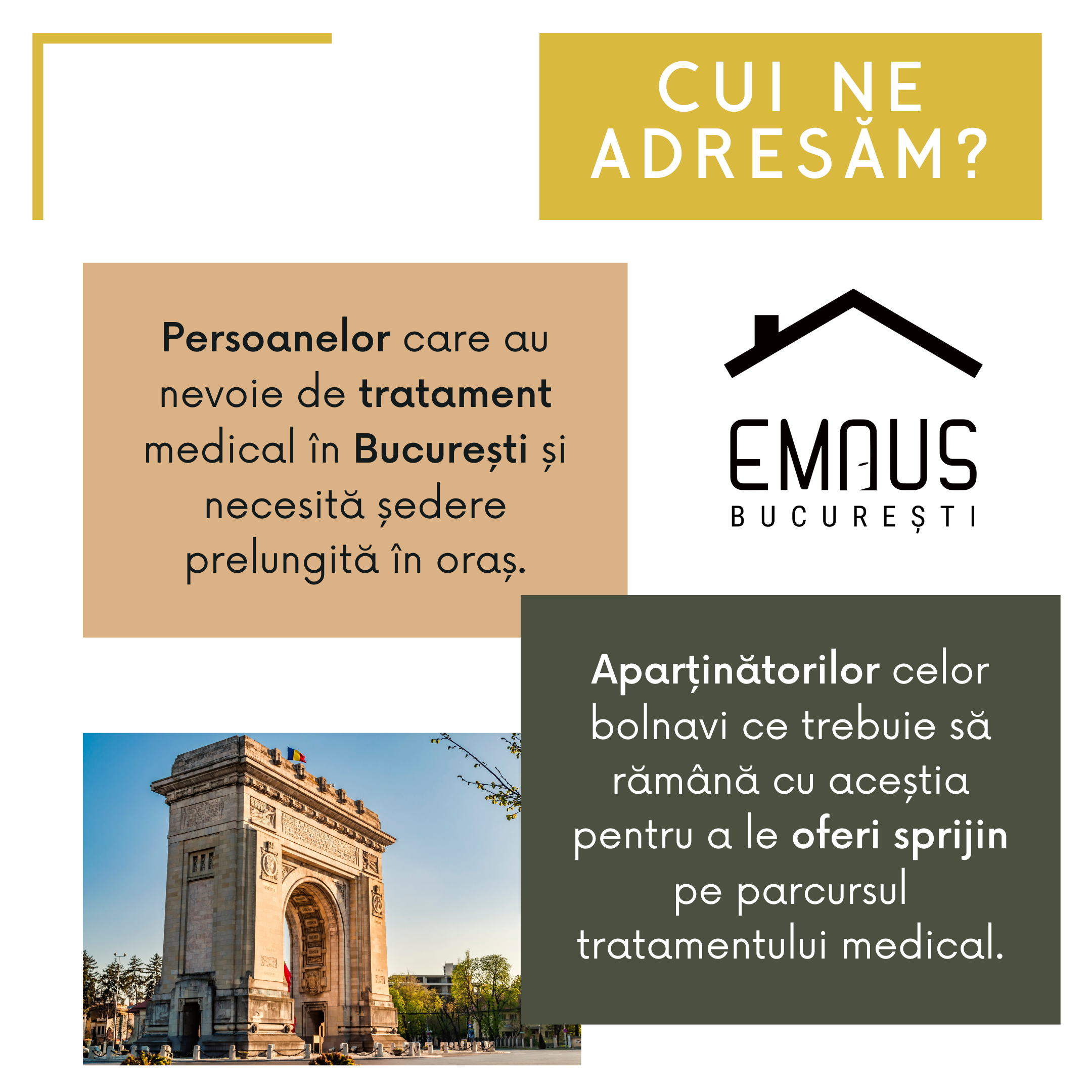 Viziune: Nicio persoană bolnavă, străină în București și cu venituri modeste, fără un loc unde să poată dormi noaptea, în siguranță!