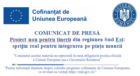COMUNICAT DE PRESĂ Proiect nou pentru tinerii din regiunea Sud Est: sprijin real pentru integrarea pe piața muncii