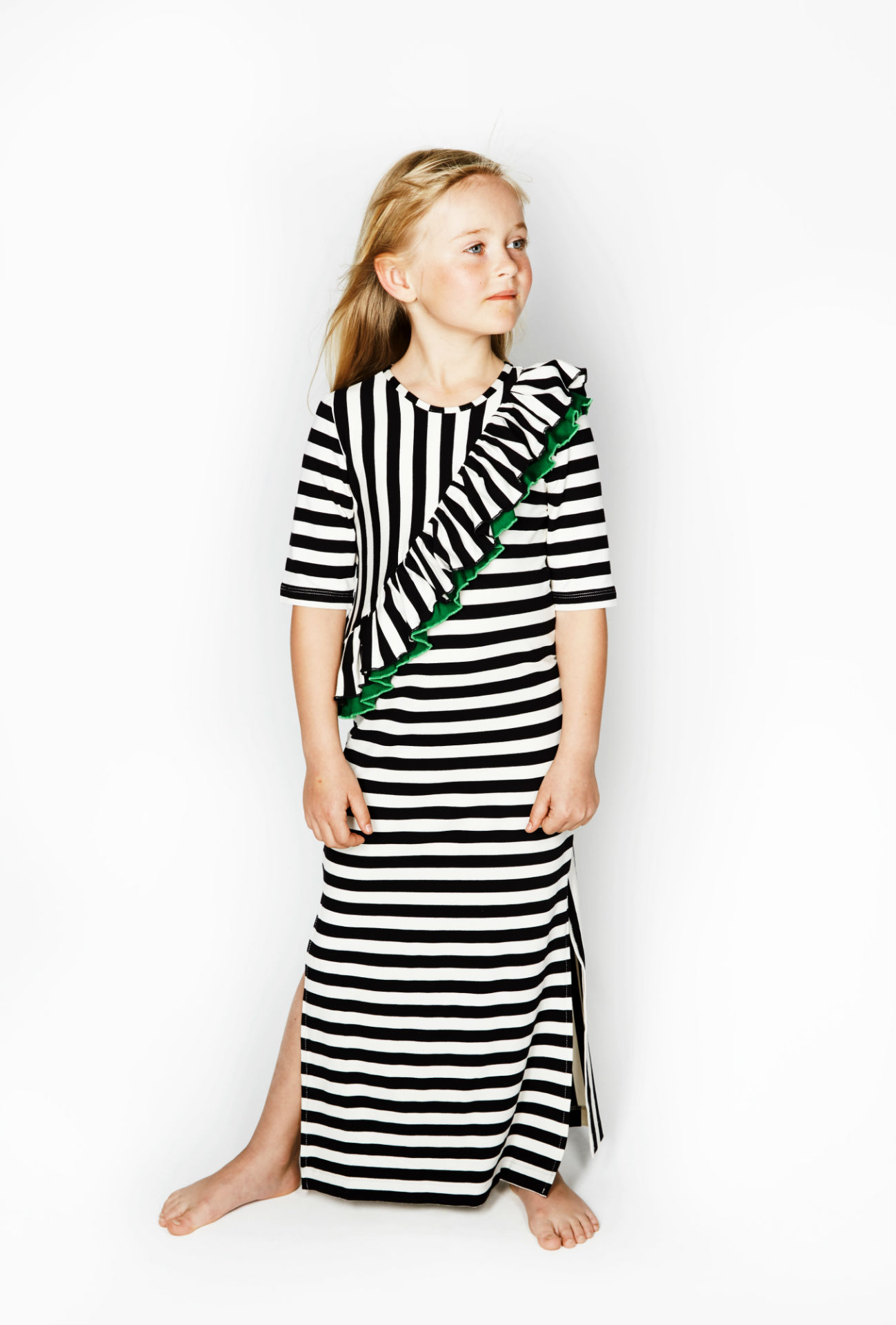 Rochița Barcelona poate fi o opțiune pentru un look ideal pentru o vacanță la mare. Imprimeul navy și volănașele sunt detaliile care transformă această rochiță în viitoarea favorită a fetiței tale.