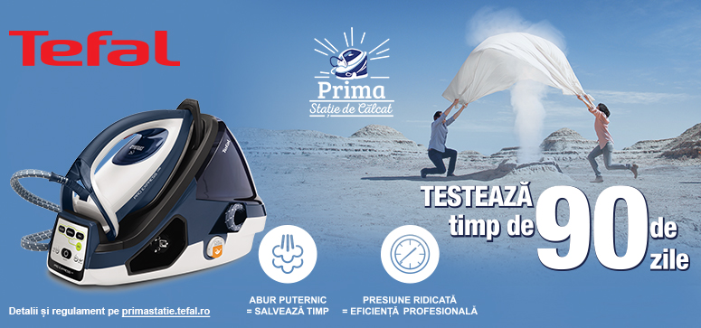 Mai exact? Între 1 septembrie și 31 decembrie 2017, cumpără oricare dintre stațiile de călcat Tefal din orice magazin participant la campania “Testează timp de 90 de zile”, despre care găsești toate detaliile pe primastatie.tefal.ro.