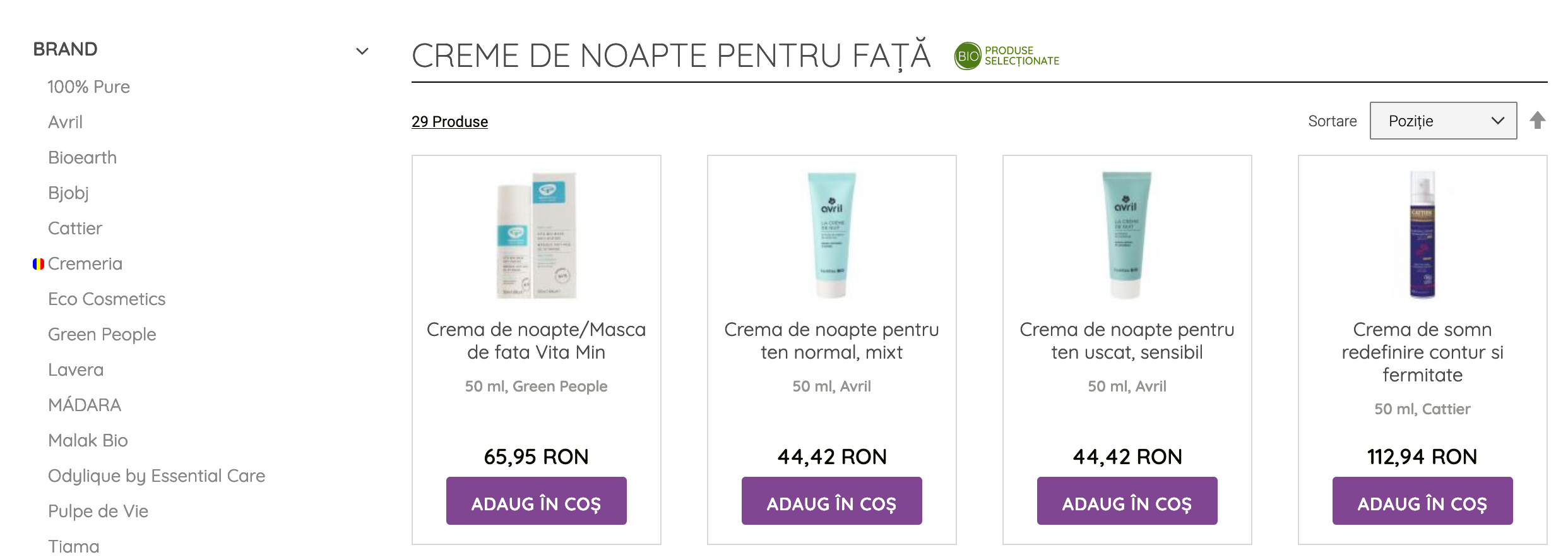 creme de noapte naturale, creme de noapte organice, creme de noapte bio