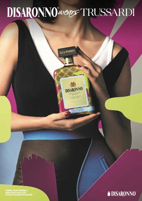 Reunind valori comune precum traditia, inovarea si eleganta italiana, editia limitata poarta cu mandrie textura tipica Trussardi suprapusa formei unice a sticlei Disaronno. Imaginea de sarbatori a sticlei e completata cu tuse de fuchsia, verde si albastru care incadreaza faimoasa eticheta, creand astfel o editie de colectie moderna si eleganta in acelasi timp.