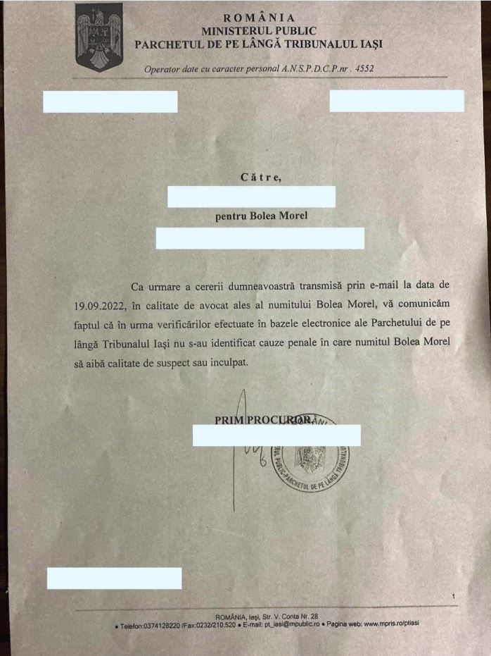 Pentru a demasca calomniile deliberate făcute de jurnalişti de integritate discutabilă fără nici un respect faţă de opinia publică şi autorităţile competente vă oferim spre lecturare un document edificator care arată că preşedintele EuroDEMOS nu are dosar penal.