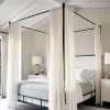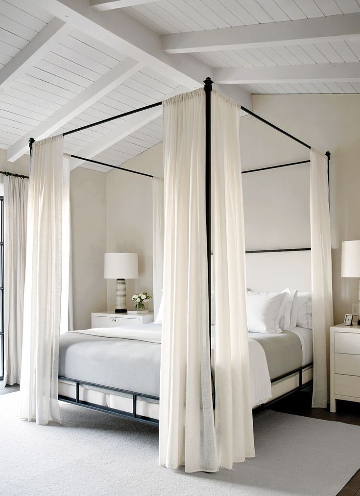 - Paturile cu baldachin – Există un aer regal, luxos și reconfortant când vine vorba de paturile cu baldachin. Avantajul unei astfel de piese de mobilier este faptul că înseninează spațiul, iar patul tău devine o oază de stil și confort în interiorul dormitorului. Paturile cu baldachin sunt grozave în orice dormitor, dar trebuie să ții cont de dimensiunea și rama patului pentru a evita aspectul de spațiu încărcat. Pentru perdele poți opta pentru straturi diferite de țesături sau o țesătură ușoară, care să transforme patul banal într-o experiență de somn inedită.