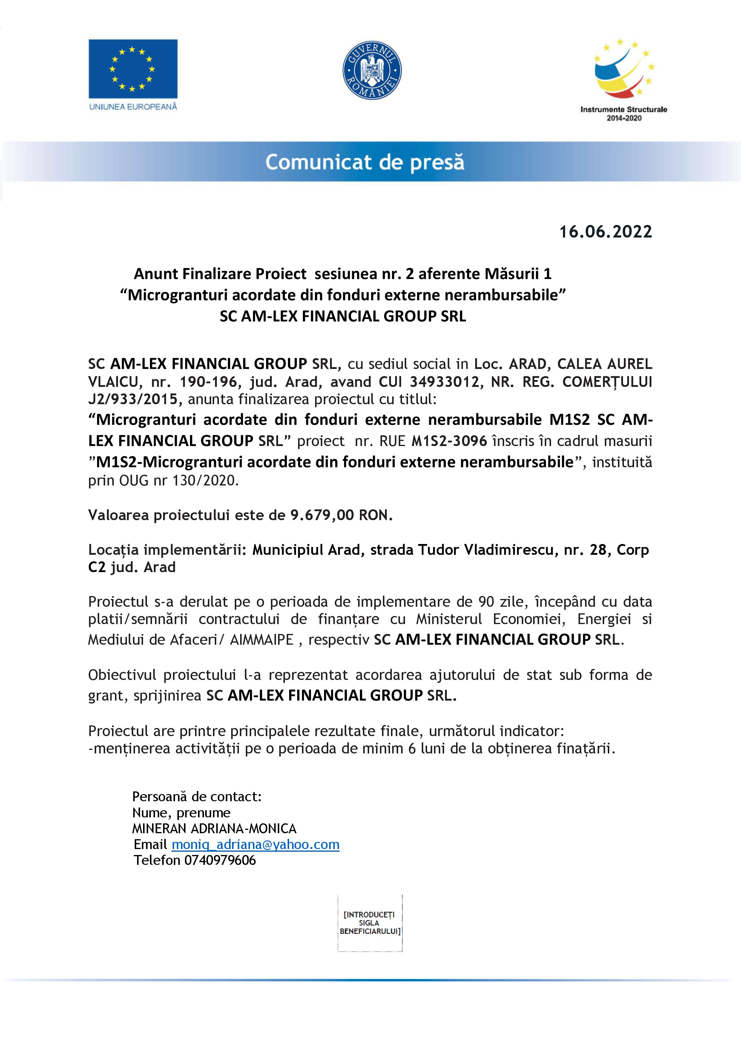 M1S2-Microgranturi acordate din fonduri externe nerambursabile, SC AM-LEX FINANCIAL GROUP SRL