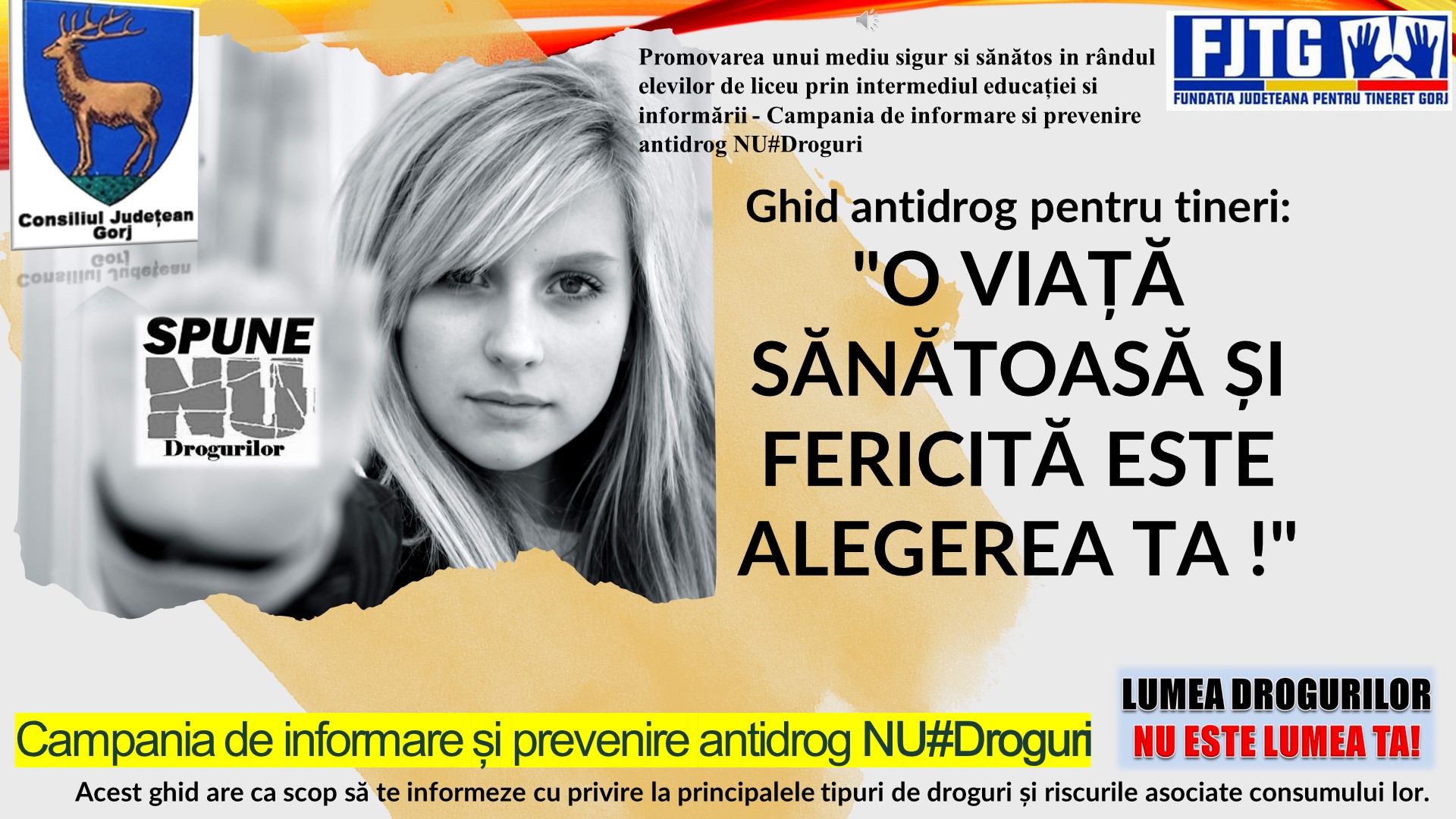 Târgu-Jiu, 09 09 2023 – Fundația Județeană pentru Tineret GORJ, membră a Fundației Naționale pentru Tineret (F.N.T.), anunță cu mândrie lansarea noului proiect intitulat „Promovarea unui Mediu Sigur și Sănătos în Rândul Elevilor de Liceu prin intermediul educației și informării – Campania de informare și prevenire antidrog NU#Droguri.”