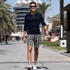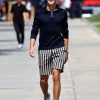 George Russell poate fi văzut purtând o pereche de pantaloni scurți în dungi cu croială relaxată și un tricou half-zip cu mânecă lungă și emblema Tommy Hilfiger Collection brodată pe piept.