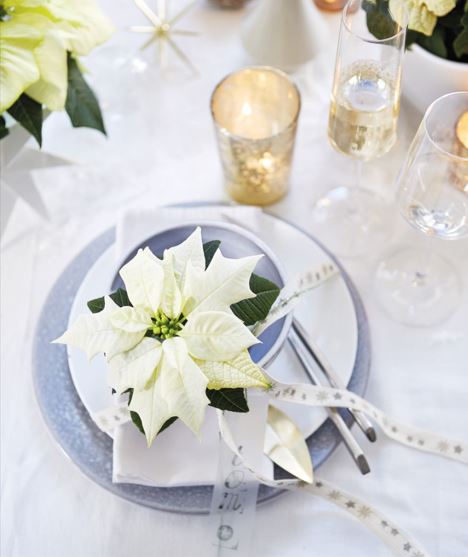 Uneori, mai puțin înseamnă mai mult. O crăciuniță albă într-un ghiveci verde crud este un decor superb pe orice masă festivă.