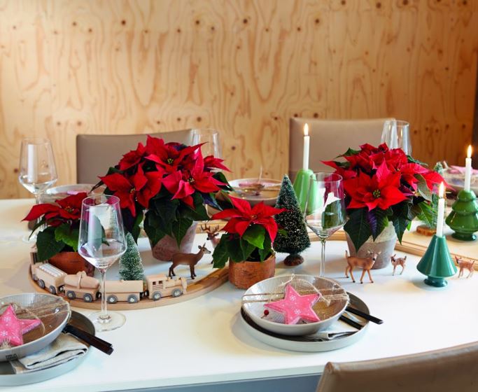 Pentru că frumoasele lor bractee sunt ideale pentru decorațiuni care să creeze o atmosferă perfectă pentru cinele tale. Bracteele formează pseudo flori uriașe cu care nicio altă floare adevărată nu prea poate concura. Dar crăciunițele au mult mai multe de oferit: vin în foarte multe culori, forme și dimensiuni. Așa că poți foarte ușor să adaptezi decorațiunile tale pentru masă în funcție de estetica pe care vrei să o creezi. Fie că aranjezi crăciunițele ca flori tăiate într-o vază sau într-un aranjament floral. Fie că le expui în ghiveci sau le combini cu alte flori de iarnă – posibilitățile creative sunt aproape nelimitate.