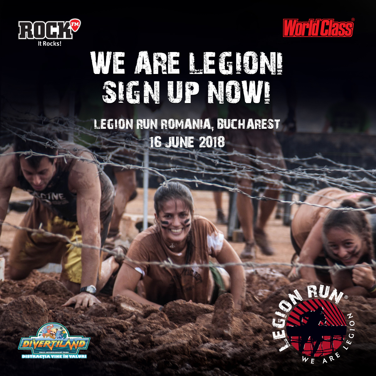Legion Run este momentul tău declanșator, în care viața ți se schimbă, pentru că vei trece la un alt nivel de forță interioară. Legion Run este experiența care te ajută să iți dai seama că poți face orice iți propui, că poți fi orice iți dorești și că tu ești adversarul tău cel mai temut, așa cum tot tu ești cel mai mare aliat al tău.Legion Run este o aventură cu obstacole, noroi, gheață și sârmă ghimpată. Aventură, distracție și antrenament în echipă!