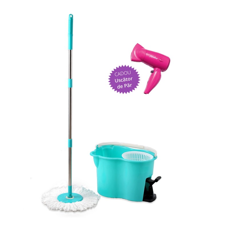 Profita de oferta www.market365.ro si cumpara Galeata cu mop rotativ si pedala, 2 rezerve din microfibra+ Bonus 1 uscator de par cadou la pretul de DOAR 95 LEI!!!